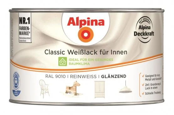 - Alpina Classic Weißlack für Innen mit eingebauter Haftgrundierung für optimale Haftung