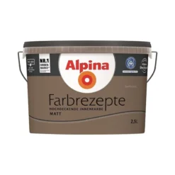 Alpina Farbrezepte „Sanfte Erde“ strahlt eine warme, gemütliche Atmosphäre aus. Das warme Braun entfaltet besonders dann seine tiefe Ruhe und Eleganz, wenn man es mit den Nuancen des Farbrezepts „einfach entspannt“ kombiniert.