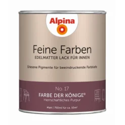 Alpina Feine Farben Lack – 34 edelmatte Buntlacke mit Persönlichkeit für Möbel mit Charakter. Jede einzelne dieser zeitlos-klassischen Nuancen besitzt eine einzigartige Inspirationsgeschichte. In harmonischer Kombination mit den Feine Farben Wandfarben schaffen sie ein edles, vollendetes Raumgefühl. Erlesene Pigmente sorgen für eine beeindruckende Farbtiefe und sehr gute Farbbeständigkeit. Die besonders deckende und hochergiebige Lackqualität überzeugt durch ein perfektes Lackierergebnis sowie eine gleichmäßige, edelmatte und strapazierfähige Oberfläche.